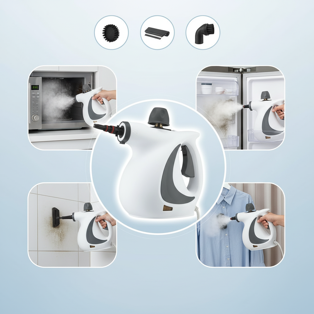 The SteamyClean Pro is built to adapt to whatever mess life throws your way. With specialized attachments for every surface, it tackles grime on tiles, microwaves, fridges, clothes, and more.